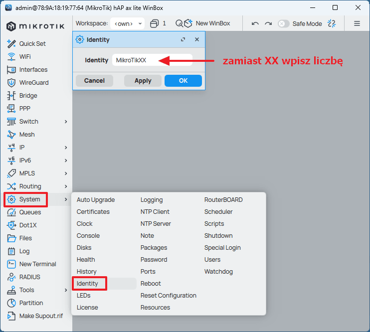 8. Jeżeli w twojej sieci znajduje się kilka mikrotików, to żeby je rozróżnić nadaj im kolejne numery